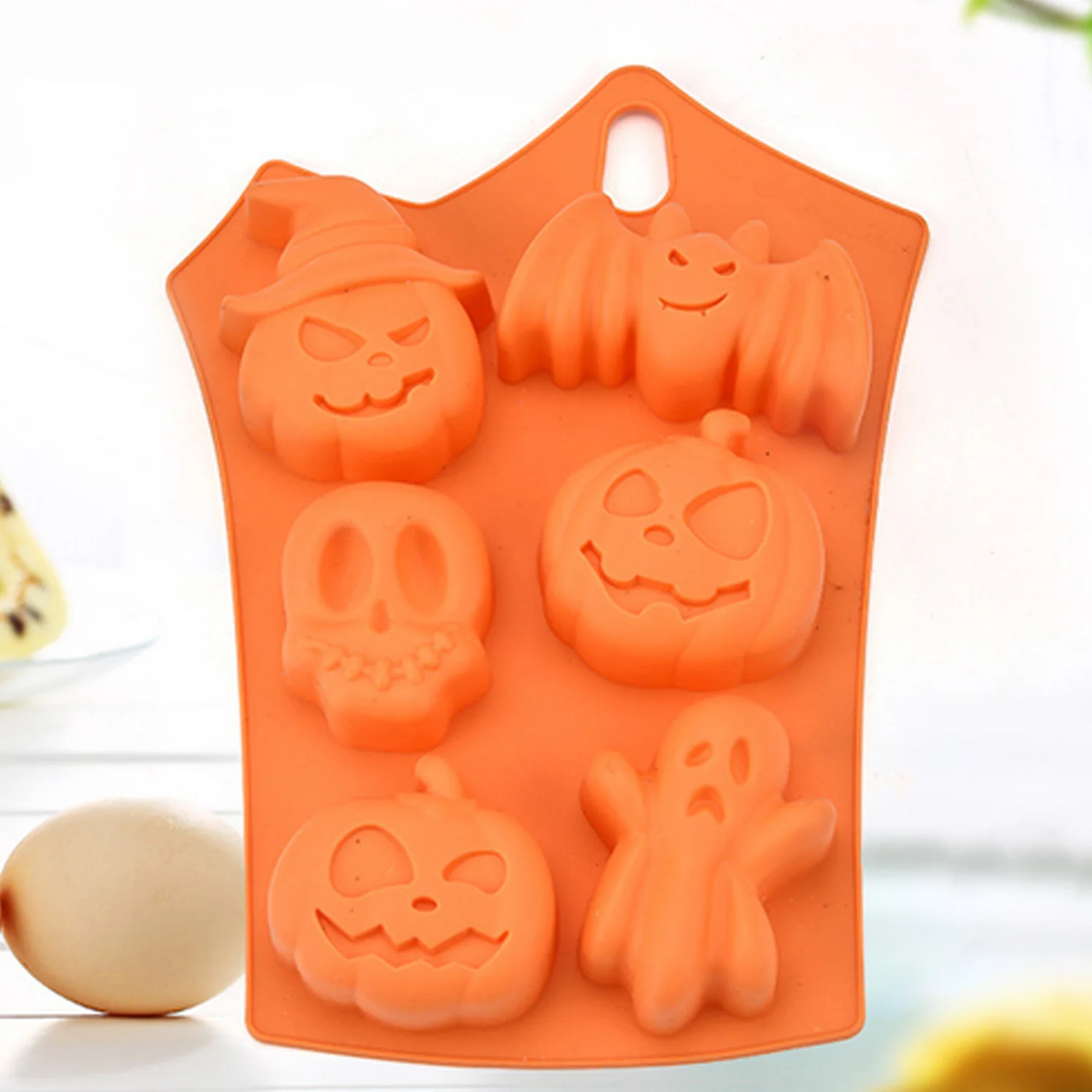Behogar 6 сетки тыква летучая мышь Череп Форма призрака Силиконовые Конфеты Форма для выпечки; шоколадный пудинг для Хэллоуина фестивалей Карн...