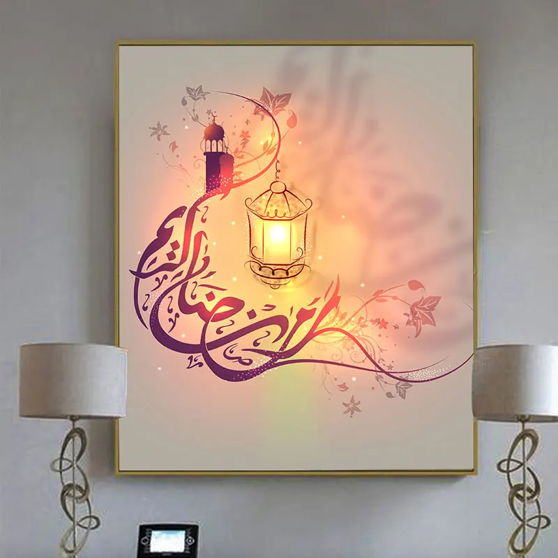 2020 Ид аль-Фитр мусульманская картина маслом счастливый фонарь струйная печать фото гостиной украшения на Рамадан стикер на стену домашние подарки