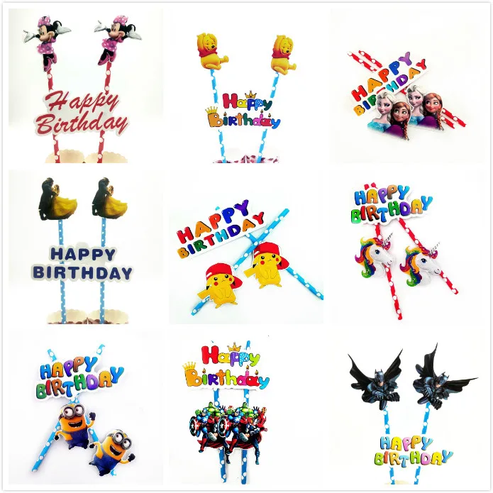 Винни и пух Минни Бэтмен Красавица и Чудовище Единорог Мстители Замороженные Анна и Эльза торт Топпер для детей день рождения