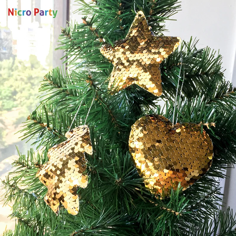 Nicro 3 шт/Набор DIY рождественское Сердце Звезда елка Ткань Подвеска со стразами украшения Рождественские подарки дерево Noel Weihnachten украшение # ...