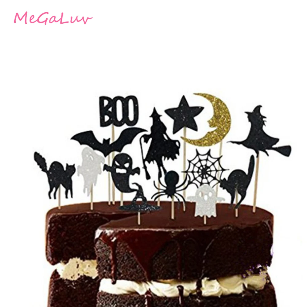 14 шт. кекс украшения на Хэллоуин летучая мышь бу эльф привидение, паук шляпа ведьмы кошка торт десерт украшения торта украшения для верха то...