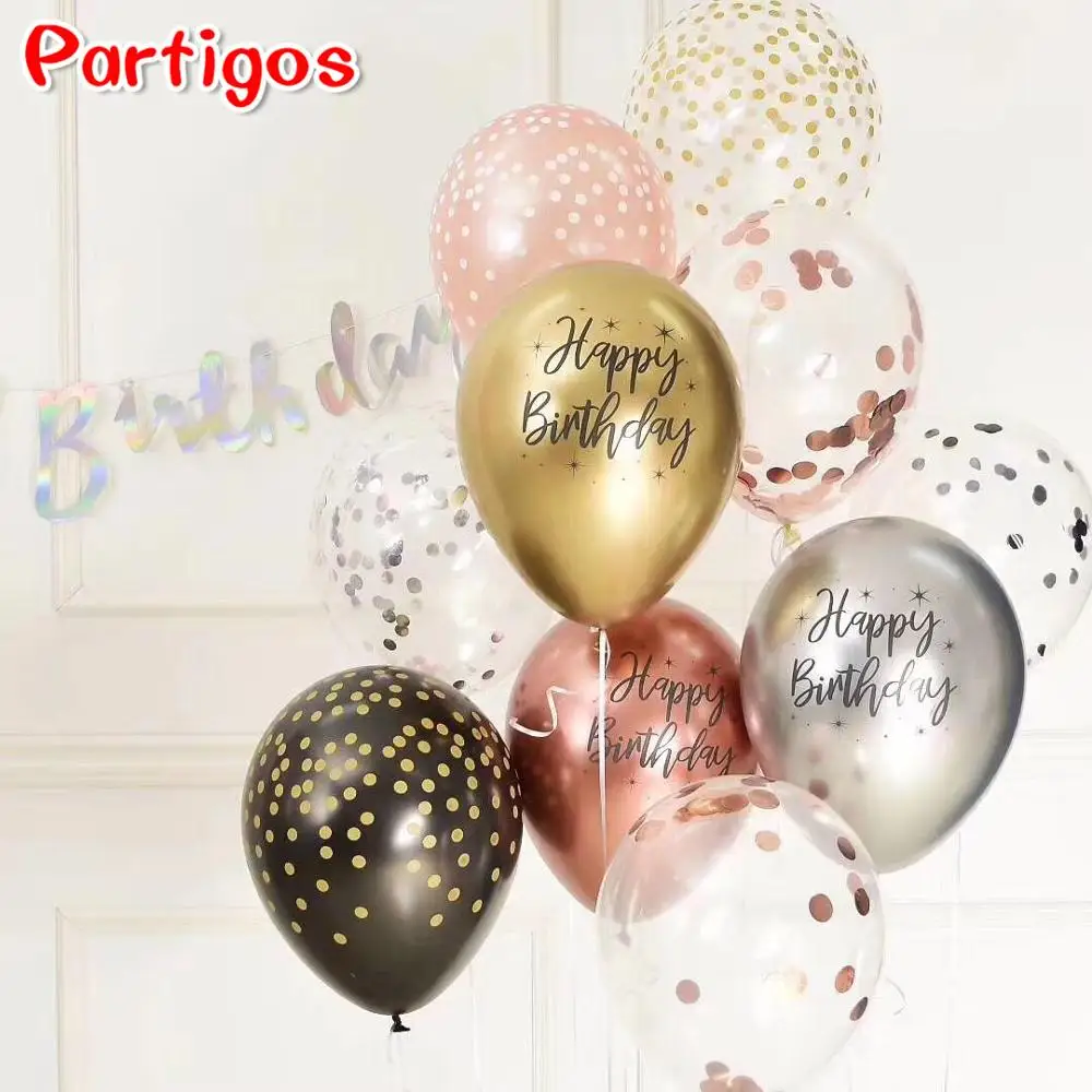10 шт 12-дюймовые шары из латекса цвета металлик жемчужные металлические шары с принтом с днем рождения гелиевый воздух globos украшения для дня рождения
