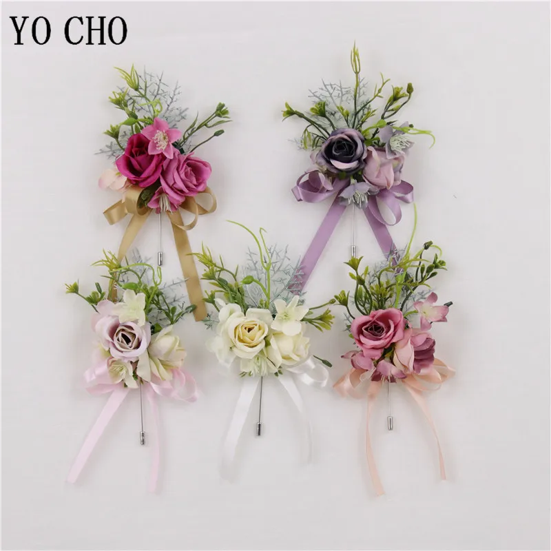 YO CHO Шелковая Роза украшение для свадьбы бутоньерка для мужчин пуговицы Женихи для мужчин Свадебный цветок девушка невесты наручные бутонь...