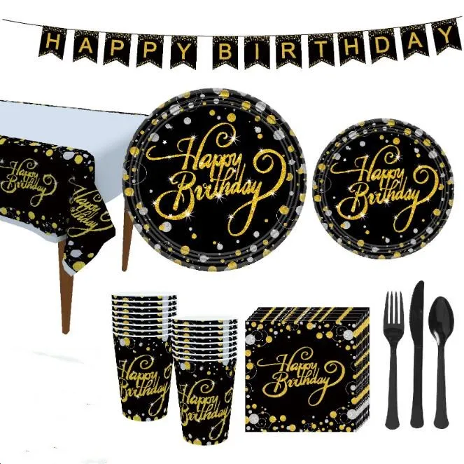 Черное золото бумажные одноразовые столовые приборы Рождество День рождения бумажные тарелки и стаканы карнавальные вечерние принадлежности юбилейное украшение