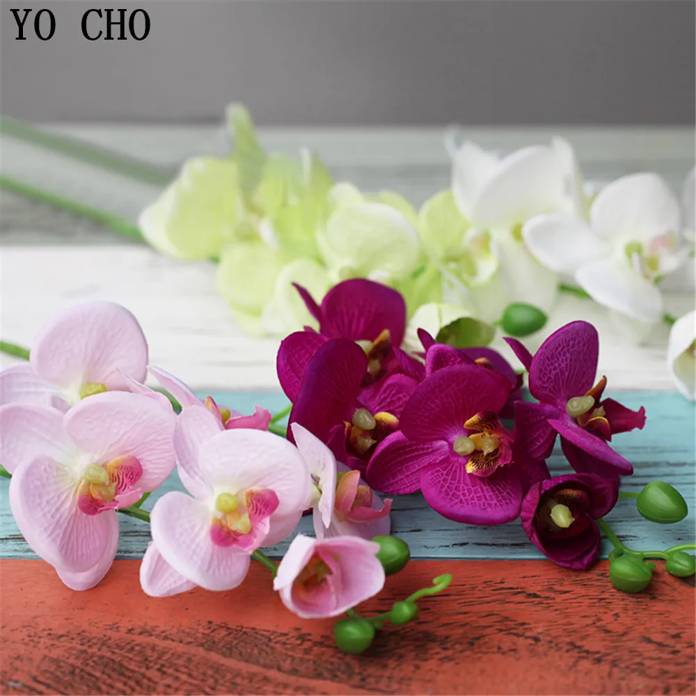 YO CHO искусственный цветок, Шелковая бабочка, Орхидея, сделай сам, искусственный цветок, букет, голубая бабочка, Цветочная композиция, для дома, вечерние, свадебные украшения