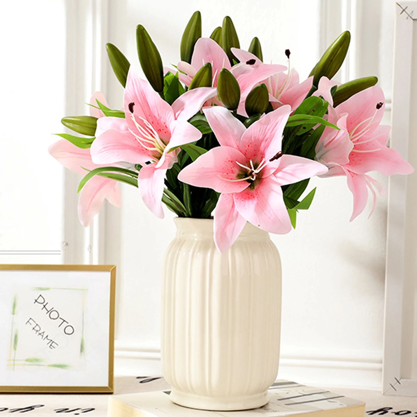 1 шт., шелковые лилии, искусственные цветы для сада, 2 головки, искусственные цветы, Европейский ретро стиль, для самостоятельного изготовлен...