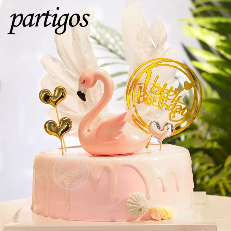 1 шт. Розовый фламинго торт Топпер счастливое украшение для торта ко дню рождения Фламинго вечерние Декор Свадебный деко BabyShower летние вечер...