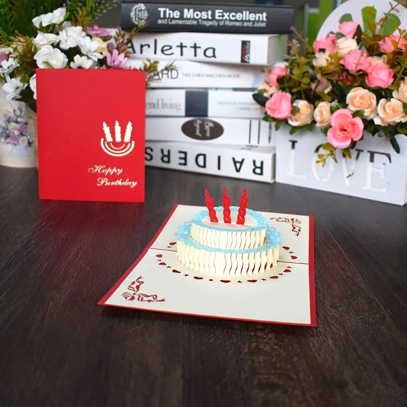 2 цвета с днем рождения свеча для торта 3D открытка-раскладушка с наклейка на конверт лазерная обработка поздравительная Почтовая открытка п...