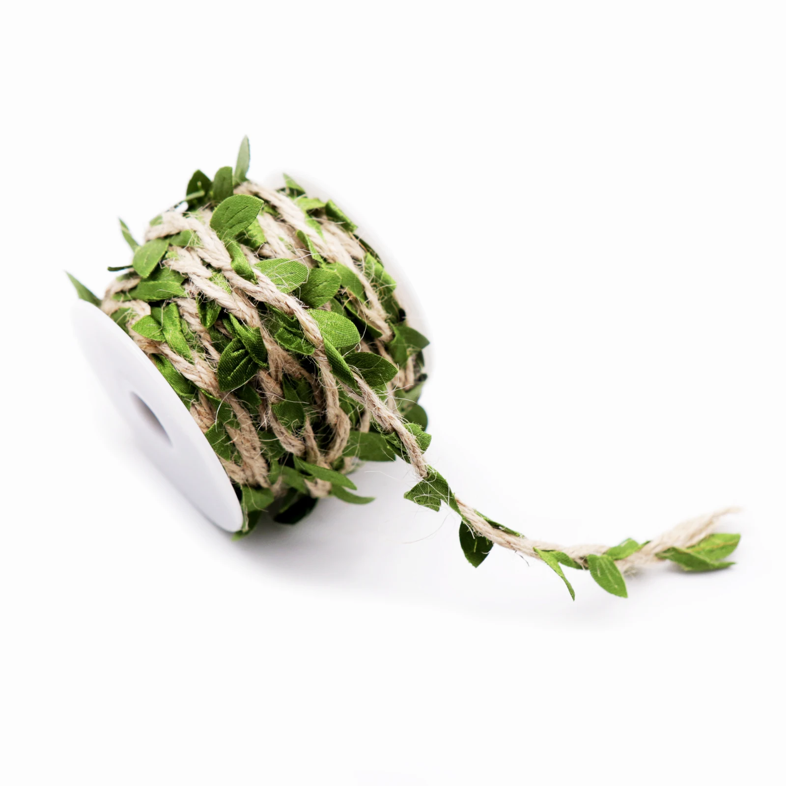 1 ярд моделирование зеленые листья ткачество пеньковая веревка DIY Свадьба День рождения Свадебные украшения из ротанга Подарочный букет уп...