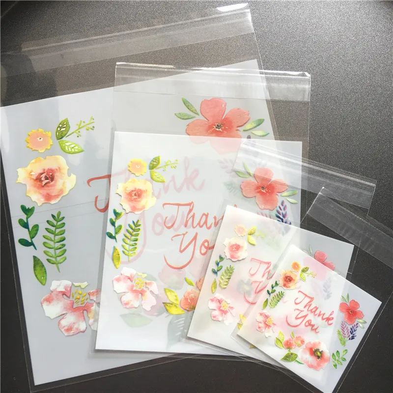 100 шт./лот 4 размера цветочный пластиковый самоклеющийся мешок для упаковки печенья свадебный мешок для украшения конфет подарок спасибо сумки