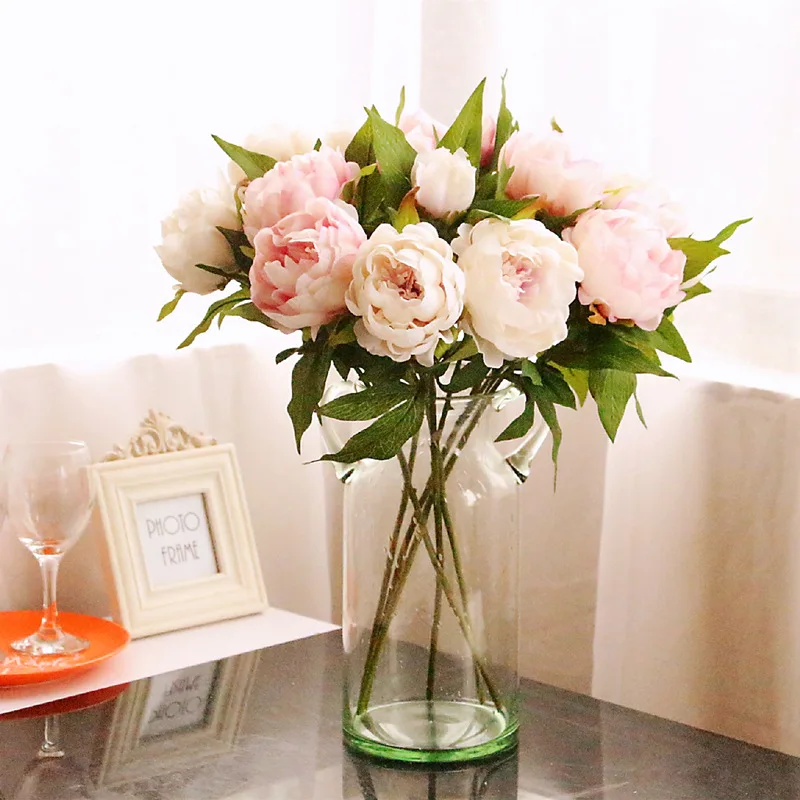 Высокое качество, искусственные цветы, 3 головки, пионы, шелковые цветы для дома, украшения, искусственные тканевые цветы, свадебные цветы, б...