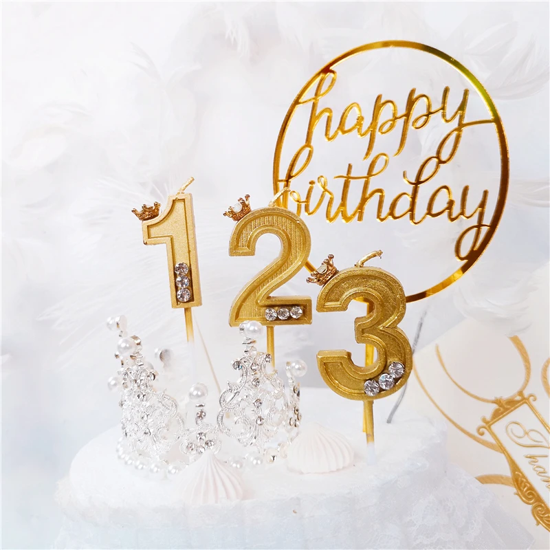 Корона с бриллиантовым номером Свечи для торта на день рождения 0-9 Золотой Топпер для торта детские свечи для дня рождения для торта свадебные принадлежности украшения