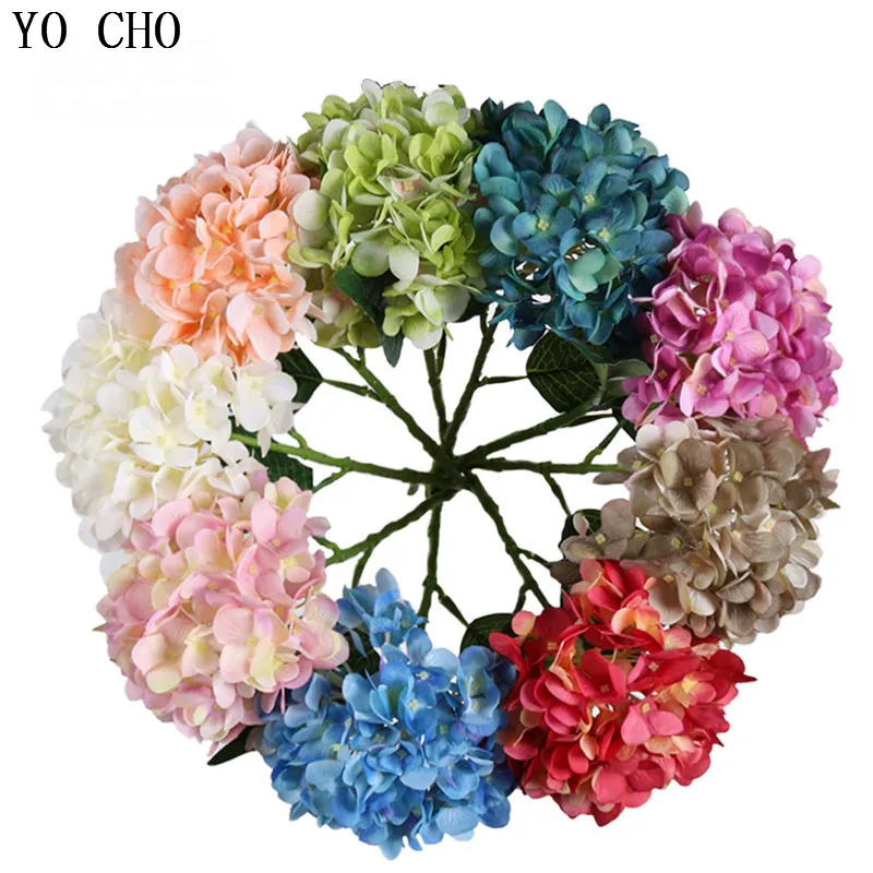 Бабочка головки гортензии Искусственный шелк цветок ветви синий дом Свадебные осенние украшения искусственная Гортензия растения высокое...