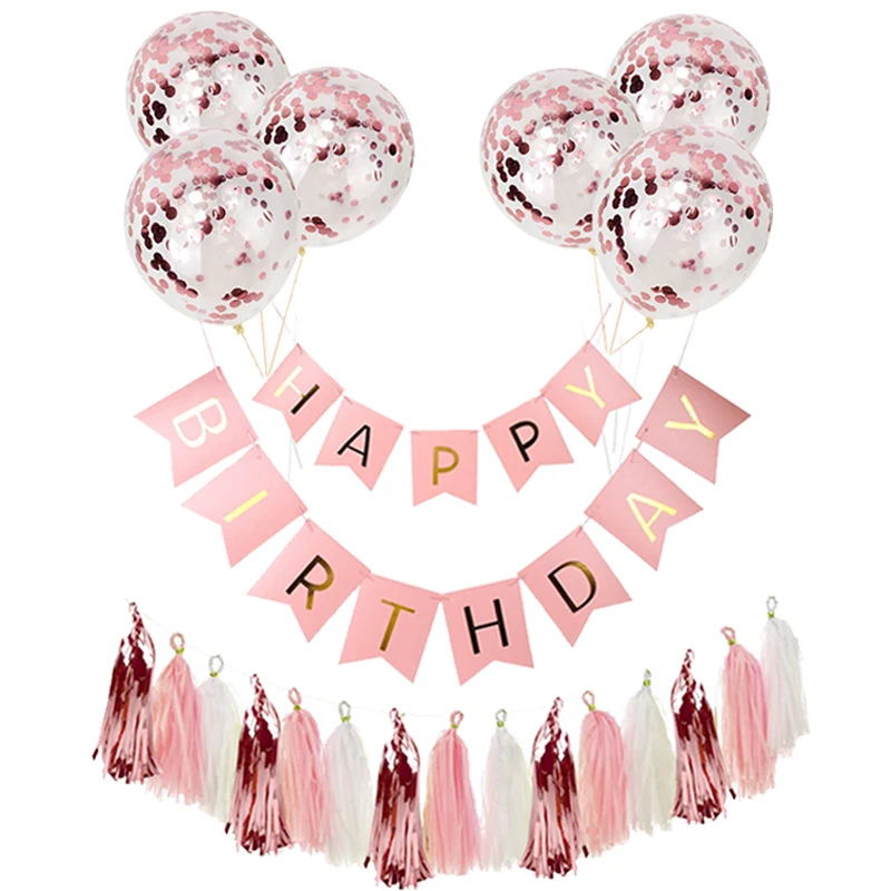 Счастливый плакат "с днем рождения" Розовое золото кисточкой вечерние поставки одноразовые декоративные подкладки Дети Единорог Заморожен...