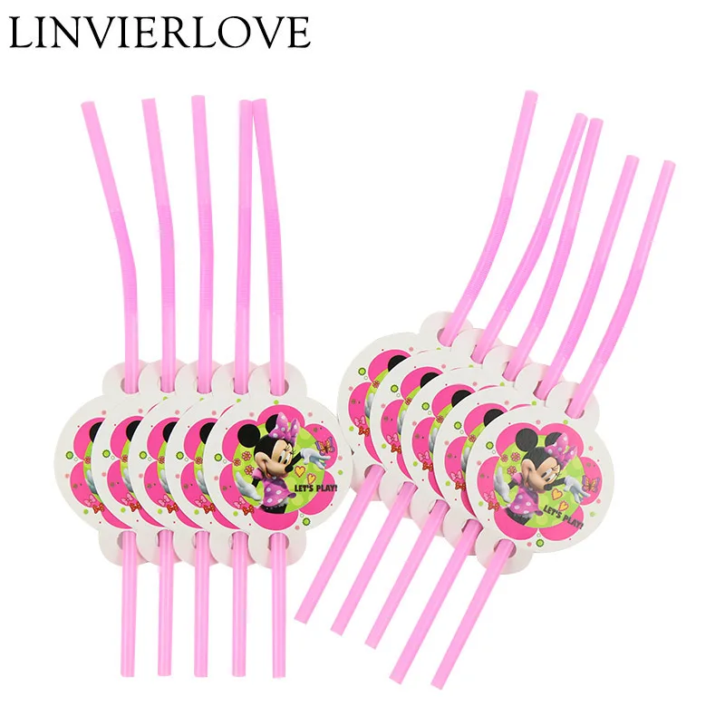 10 шт./упак. мультфильм тема Минни одноразовые соломинки для детей мальчиков девочек день рождения пластиковые соломинки для питья вечерние Декор поставки