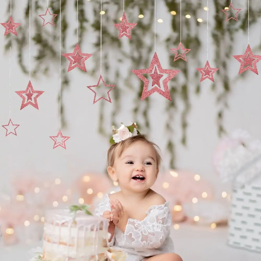 PATIMATE звезда розового золота бумажные гирлянды 1 день рождения баннер мальчик девочка с днем рождения Декор дети один год овсянка Baby Shower