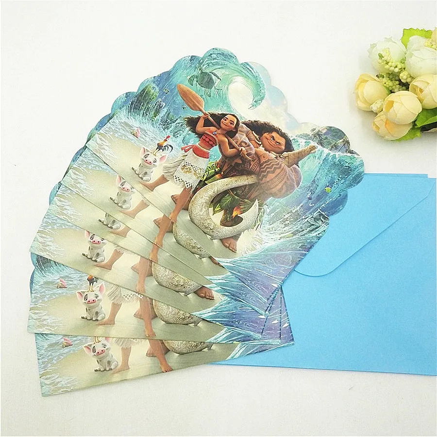 6 шт./лот, Мультяшные Моана товары для вечеринки, детская карта на день рождения, вечерние украшения, Детские праздничные принадлежности