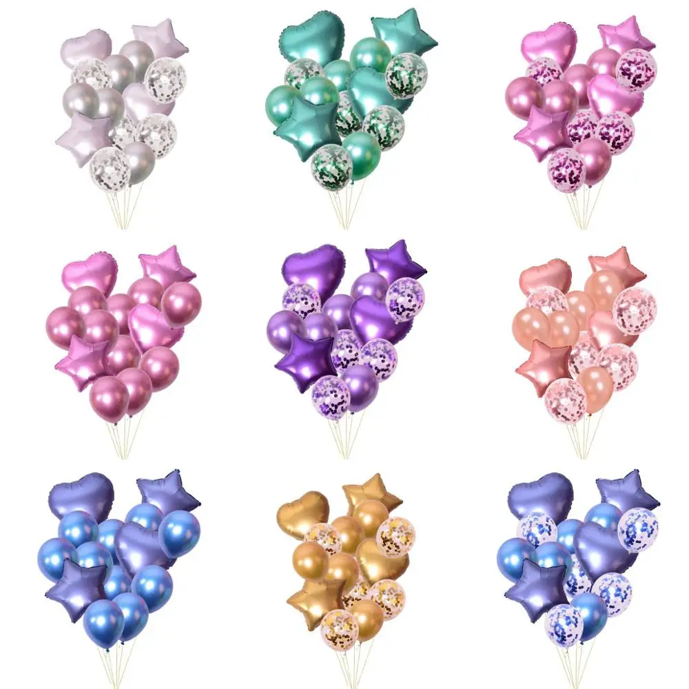 14 шт., воздушные шары из фольги с металлическим сердцем и звездами, Детские шары для дня рождения, латексные воздушные шары с конфетти для мальчиков и девочек, товары для вечеринки