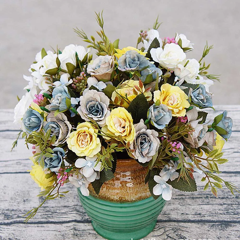 1 букет 21 голова Искусственный цветок розы Лист лаконичный дом Свадебные украшения Mariage Свадебная вечеринка поставки
