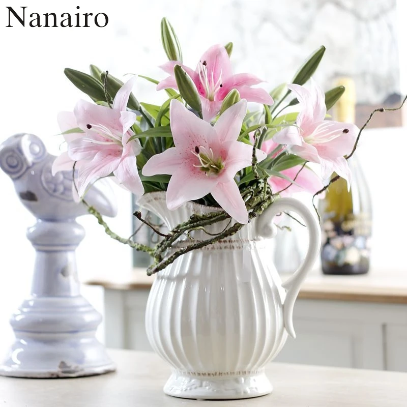 1 шт. 3-вилка 36 см шелковые искусственные букет лилий для Свадебные украшения венок легко изменить расположение таблицы дешевые искусственные цветы