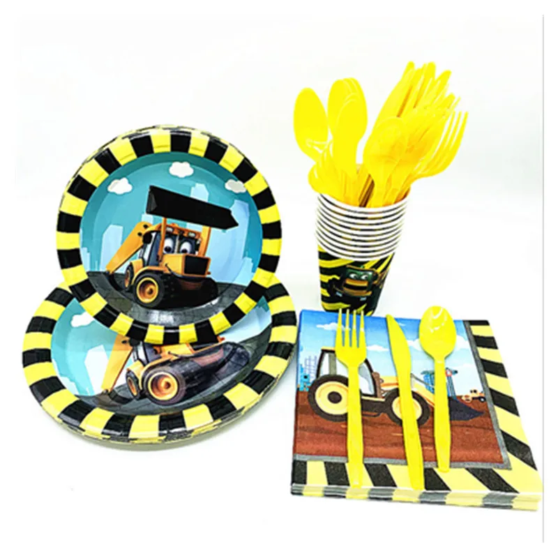 Строительная техника экскаватор принадлежности для тематической вечеринки одноразовая салфетка для посуды бумажные тарелки чашки День Ро...
