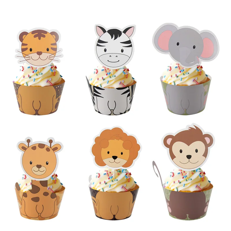 12 шт Джунгли животных обертка для кексов Топпер День Рождения украшения детей сафари зоопарк кекс для вечеринки baby shower вечерние поставки