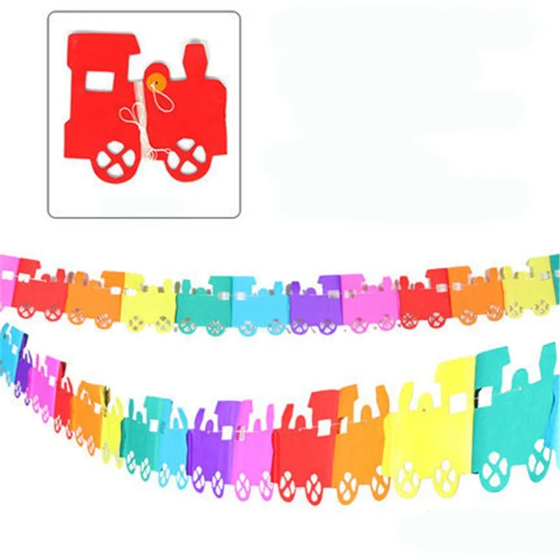 3 м висит цветной бумажный цветок Сердце поезд гирлянда для детей декор для вечеринки в честь Дня рождения Детская Home DIY тянуть цветок Supplies8