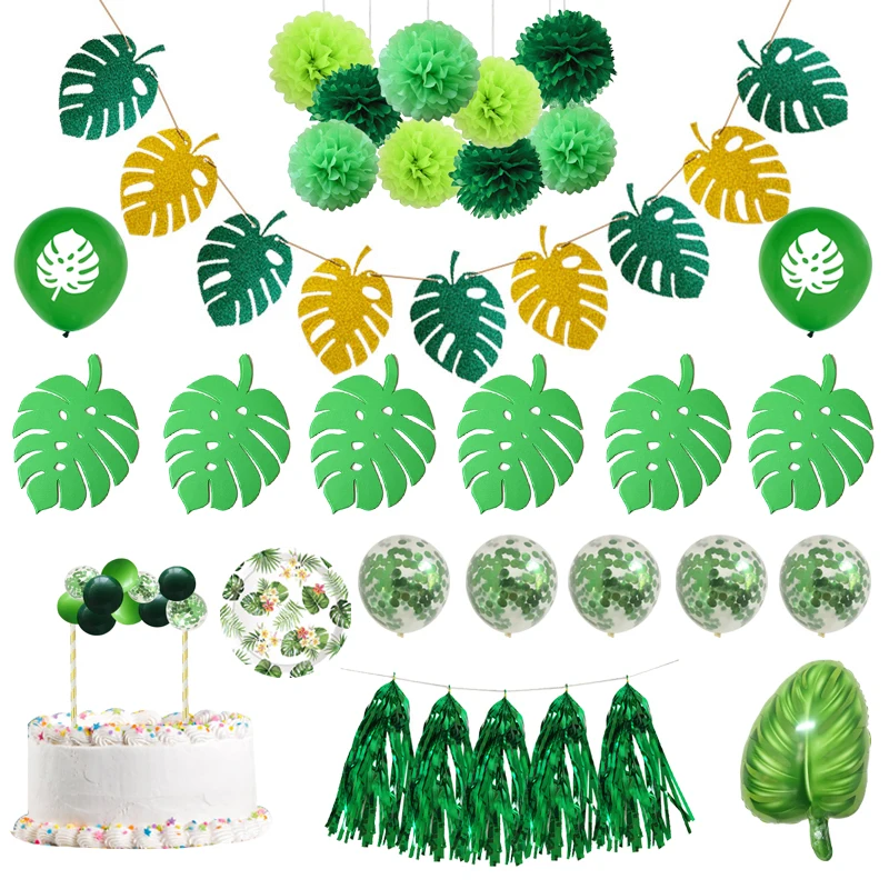 Chicinlife лист ананаса Пальмовая плакатная бумага тарелки тропический летний праздничный декор воздушный шар "Конфетти" Гавайские товары на де...