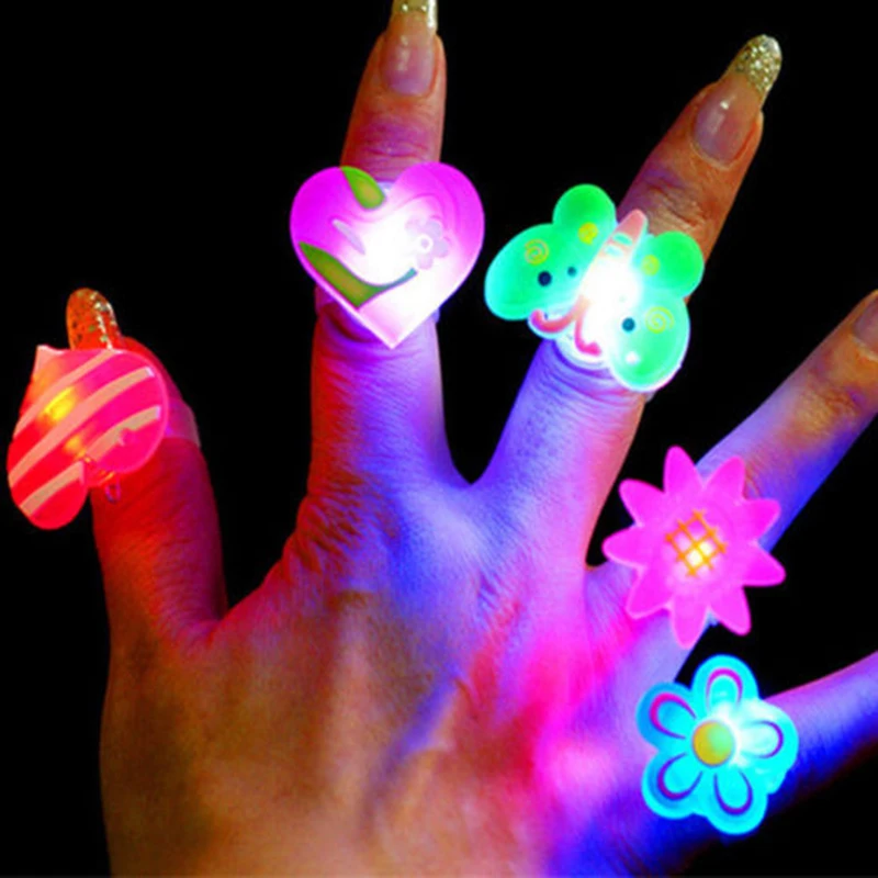 10x Дети СВЕТОДИОДНЫЙ мигает светятся в темноте перстни Рождество вечерние пользу забавная игрушка подарок