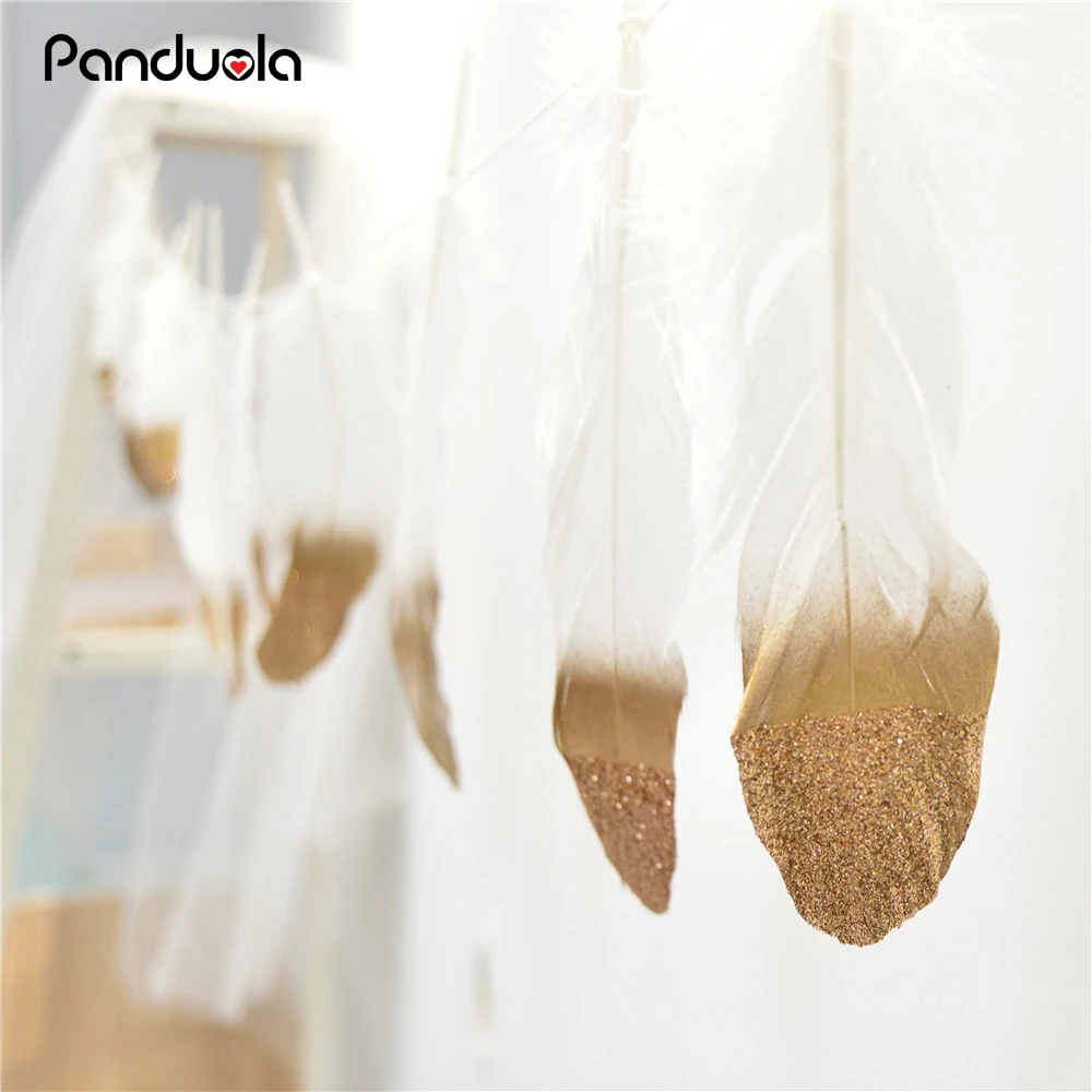 Panduola 12 шт. 2 м баннеры из перьев белые баннеры из перьев с золотыми блестящими порошками Свадебные гирлянды баннеры декор для детской комнаты