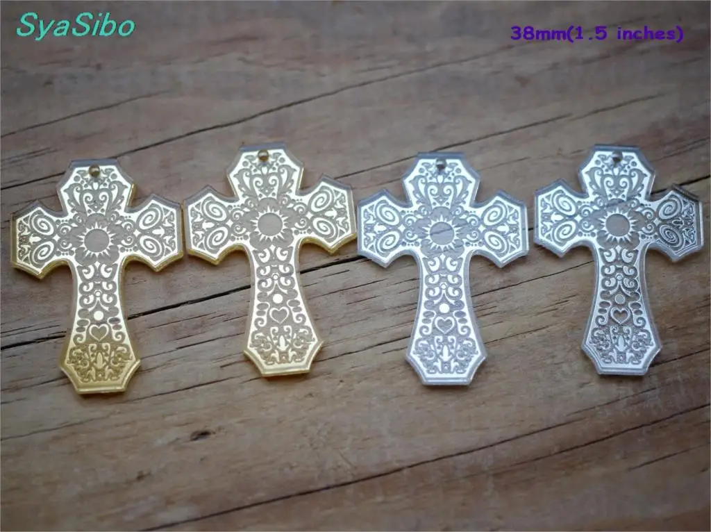 38 мм/50 мм акриловые сережки-крестики украшения на Хэллоуин золото и серебро зеркало лазерный вырез-AC1425KO