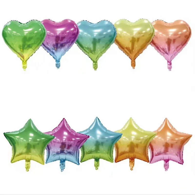 5 шт. 18 дюймов Новые градиентные цветные фольгированные воздушные шары в форме сердца и звезды майларовые воздушные шары на свадьбу, День Св...