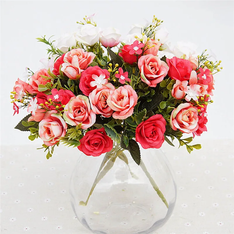 13 головок шелковые розы Букет невесты Свадебные Рождественские украшения для дома ваза Кашпо с рисунком искусственные цветы