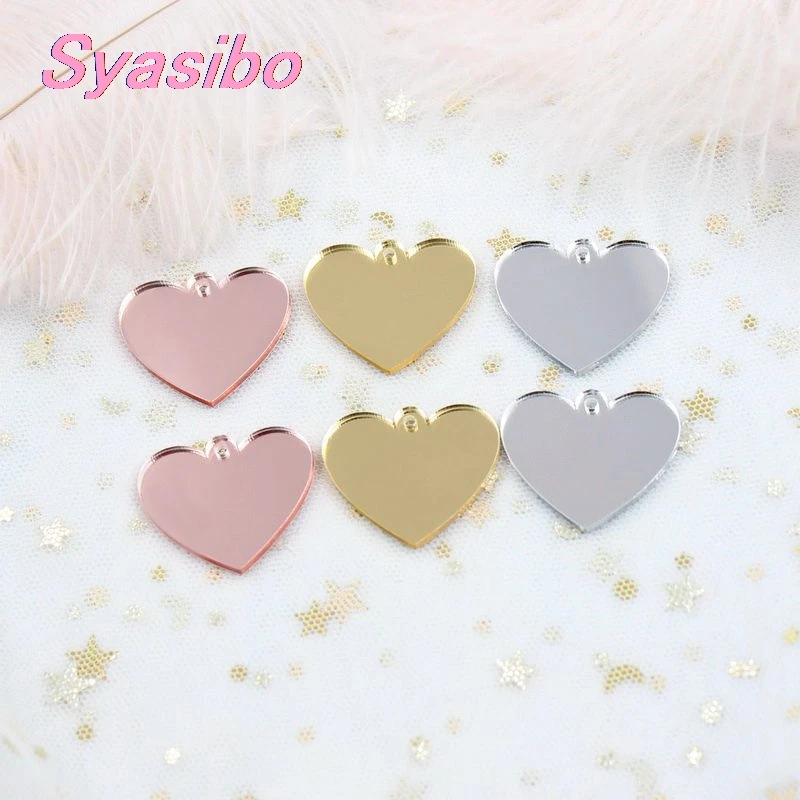 (6 шт каждый) 32 мм акриловые подвески в форме сердца DIY украшения золото/серебро/розовое зеркало Сердце Лазерная вырезка 1,3 "-AC1038