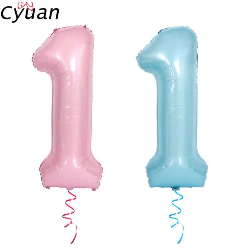 Cyuan, 40 дюймов, Гигантские Воздушные шары с 1 цифрой, для первого дня рождения, для девочек и мальчиков, вечерние воздушные шары с фольгой, один год, номер 1, воздушные шары розового, синего цвета, яркие цвета
