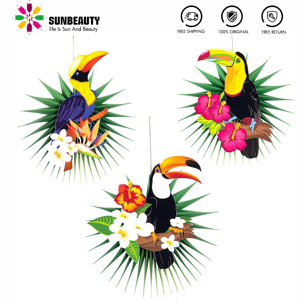 Гавайские украшения тропические вечерние 3 шт висячие бумажные вентиляторы Тукан Пальмовые Листья узор летние товары для дня рождения вечерние Luau Декор