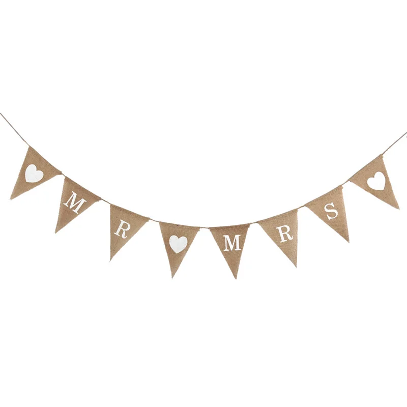 Винтажный Свадебный баннер Mr Mrs Love heart с джутовым бантиком, реквизит для фотосессии, гирлянда в рустикальном стиле, вечерние свадебные украш...