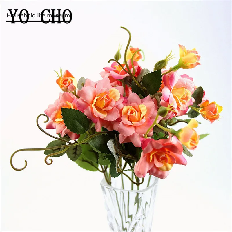 Йо Чо искусственный цветок розовая Цветочная ветка имитация цветка розы пластик для сада пейзаж декоративные искусственные цветы 15 голов
