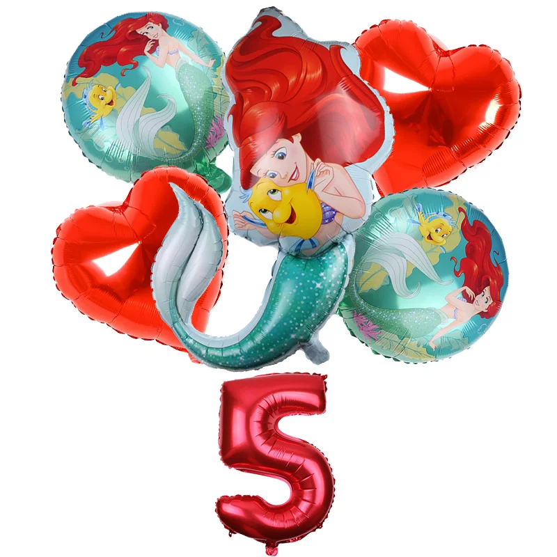6 шт./компл. Русалка воздушные шары с Ариэль одежда для сна с изображением принцесс Фольга Шар 32 дюймов красный номер для маленьких девочек День Рождения Воздушный баллон Декор Игрушки
