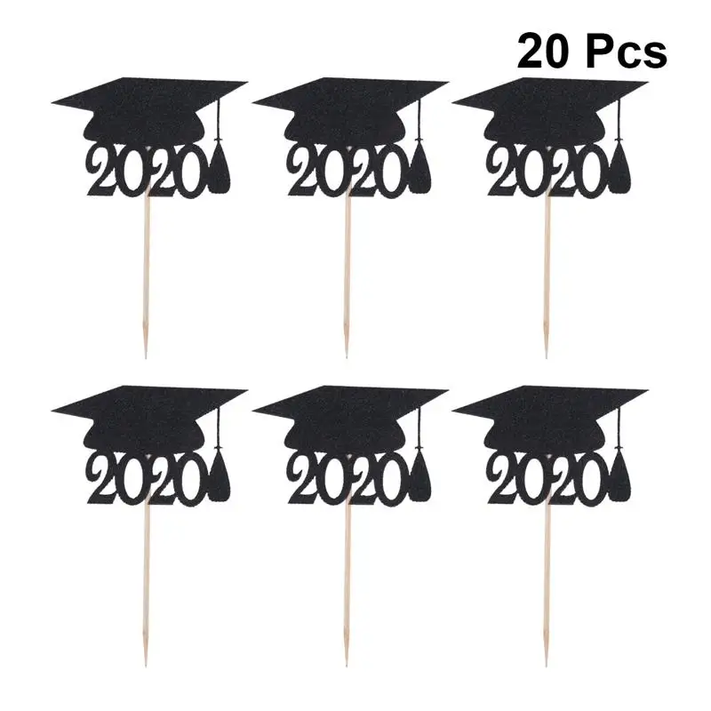 20 шт, черные вечерние топперы для кексов 2020, кисточка, докторская шляпа, вставка для фруктов, бумажные украшения торта, Фруктовые палочки, вечерние