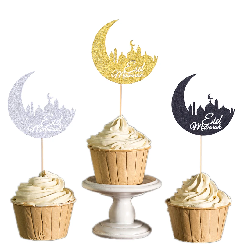20 шт., бумажные топики для пирожных Moon Eid Mubarak Ramadan Mubarak, для мусульманских, Eid, вечерние украшения для тортов 8*17 см