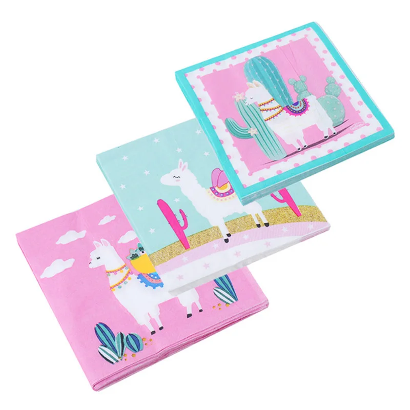 20 шт Альпака ламы Цветок кактуса салфетки декор для вечеринки в честь Дня рождения для девочек и мальчиков Единорог тропический ламы вечерн...
