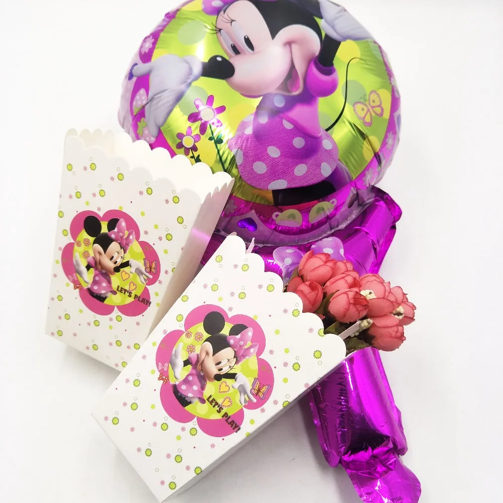 6 шт./компл. Минни Маус дети день рождения поставки коробка для попкорна чехол Подарочная коробка пользу аксессуар День рождения украшения 1