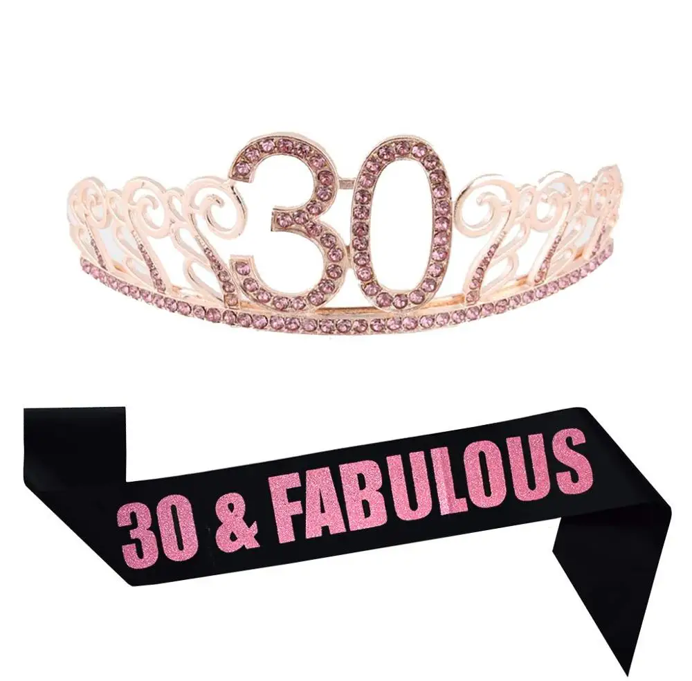 Розовая Золотая тиара 21/30/40 на день рождения и сказочный Блестящий атласный пояс с 30-летним днем рождения для вечеринки на 30 дней рождения
