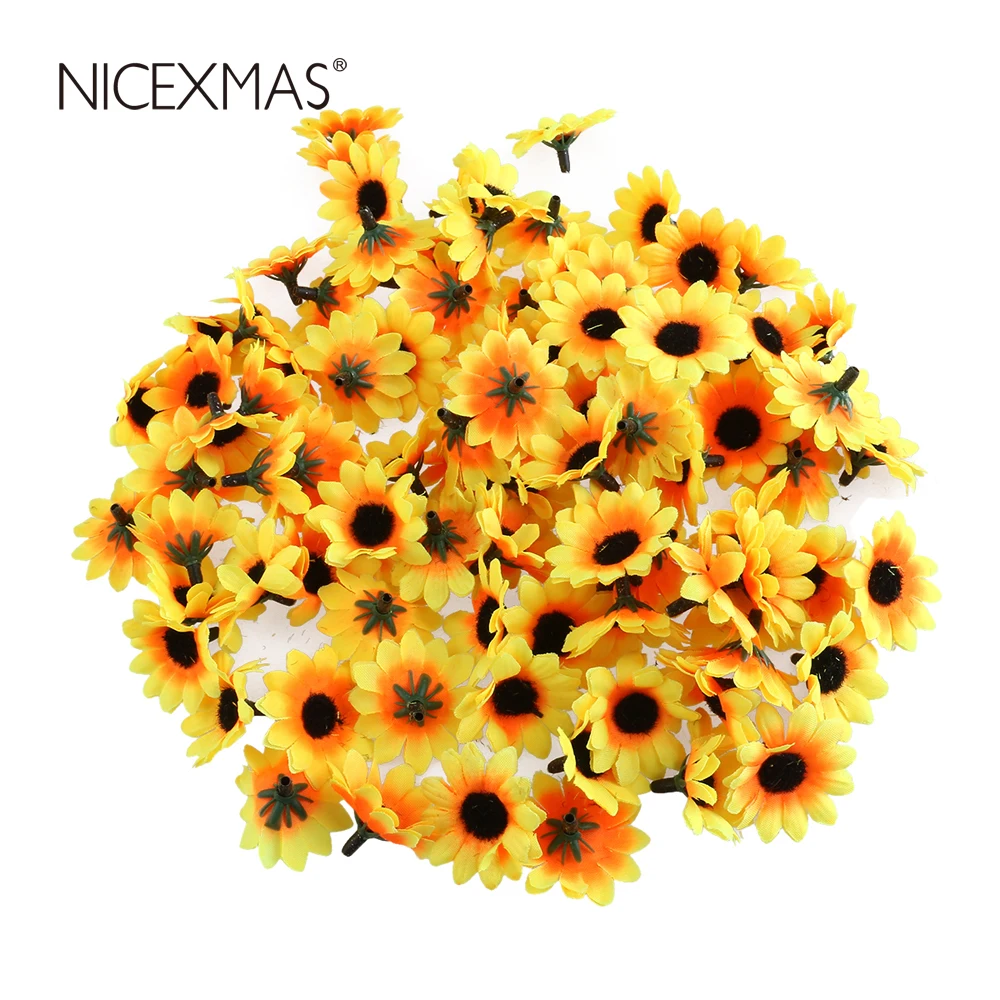 100 шт., реалистичные искусственные цветы, шелковые Подсолнухи, украшения для свадьбы, вечеринки, искусственные Скрапбукинг, цветочные аксессуары для дома