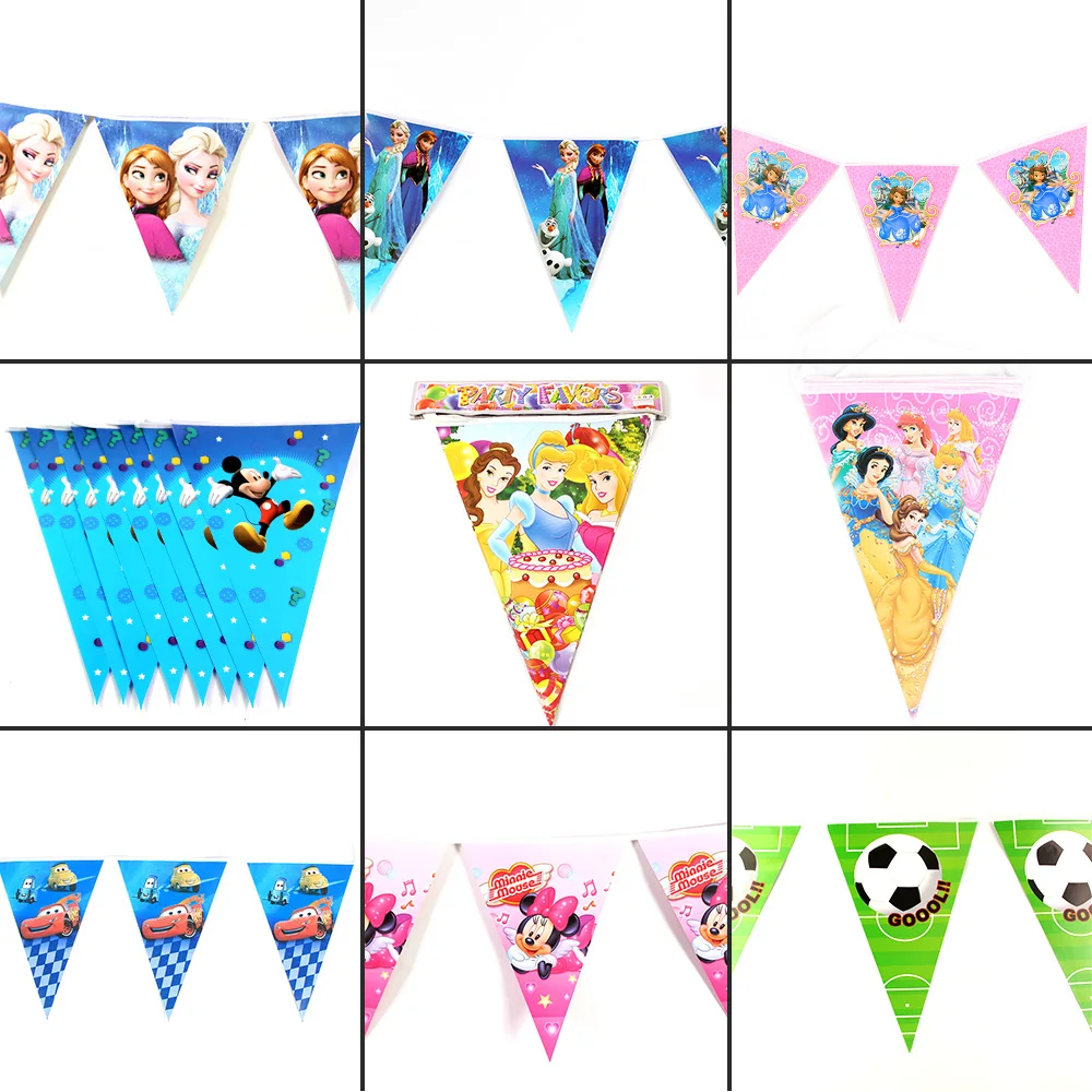 10 флагов/упаковка 2,5 м мультфильм автомобили тема принцесс гирлянда с флажками для вечеринки дети день рождения поставки бумажные гирлянды ...