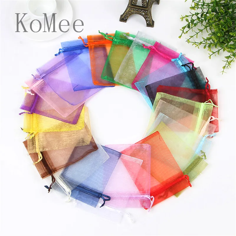50 шт./лот 7x9 9x12 11x16 13x18 см органза небольшая сумка для конфет и ювелирных изделий мешки для упаковки сувенир для свадебной вечеринки Подарочный мешок на шнурке чехлы