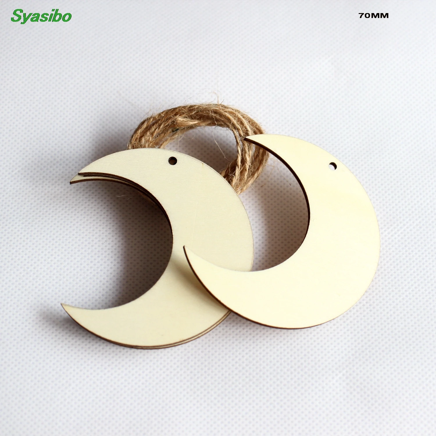 (30 шт./лот) 70 мм Природный деревянный брелок Moon теги вечерние Oraments из дерева в деревенском стиле запасы этикеток Craft 2,8 "-CT1525A