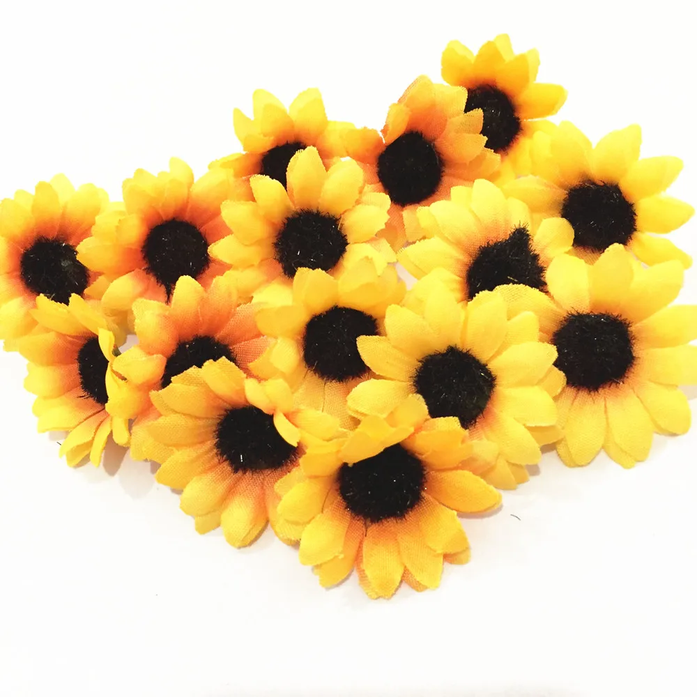 38 мм 1,5 дюймов жёлтый Подсолнух голова бутоны декоративные Синтетические Искусственные цветы детская игрушка в ванную Свадебный букет DIY