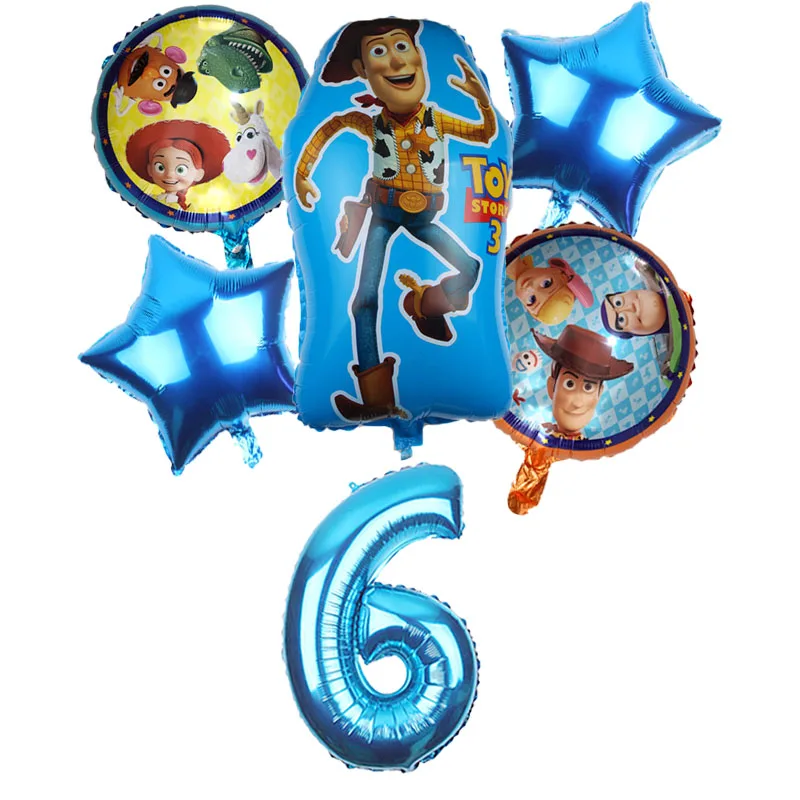 6 шт. игрушка история Базз свет год воздушные шары мультфильм фольга гелий 32 дюйма Количество Синие шары История игрушек 4 с днем рождения во...